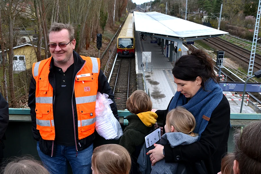 Ein leitender Mitarbeiter der DB zeigt uns das Stellwerk am S-Bahnhof Borgsdorf, Stadtentdecker in Hohen Neuendorf, 2020