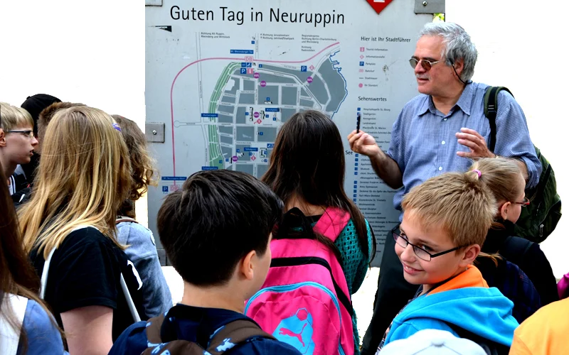 Ein Mitarbeiter des Büros für Stadterneuerung, Stadtentdecker in Neuruppin, 2019