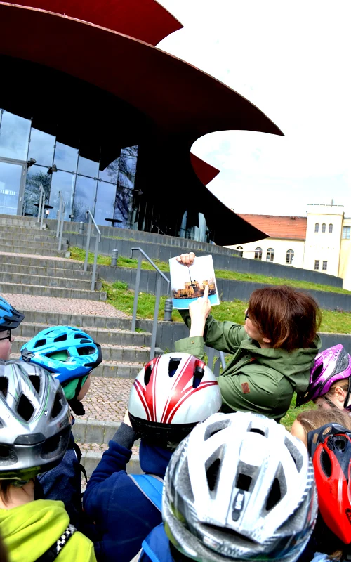 Die Leiterin des Stadtplanungsamtes Falkensee gibt uns eine Stadtführung durch das Zentrum von Falkensee , Stadtentdecker in Falkensee, 2023
