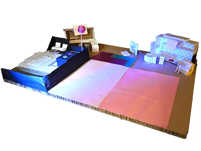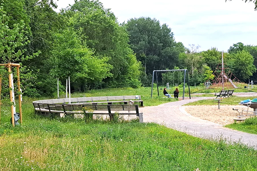 Station 3 Raum vor der runden Bank Dieser Raum ist zwar gestaltet und mit Spielelementen möbliert, bietet jedoch in den Augen der Projektbearbeiter keine guten und nicht genügend Angebote für junge Leute. Projekt 5 + 6 bieten weitere Elemente an