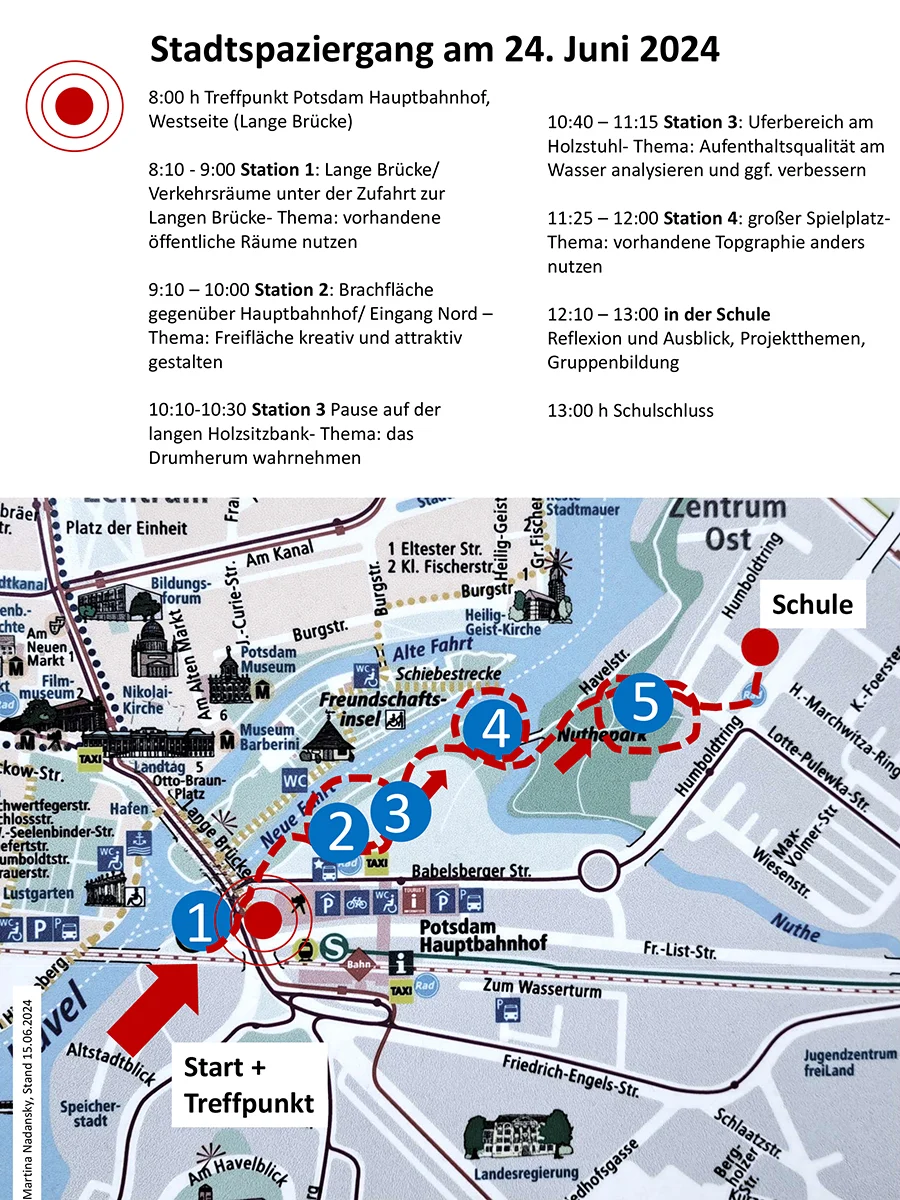 Stadtspaziergang vom Hauptbahnhof durch den Nuthepark bis zur Schule …