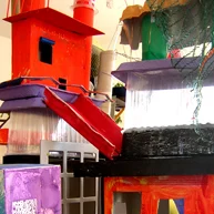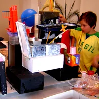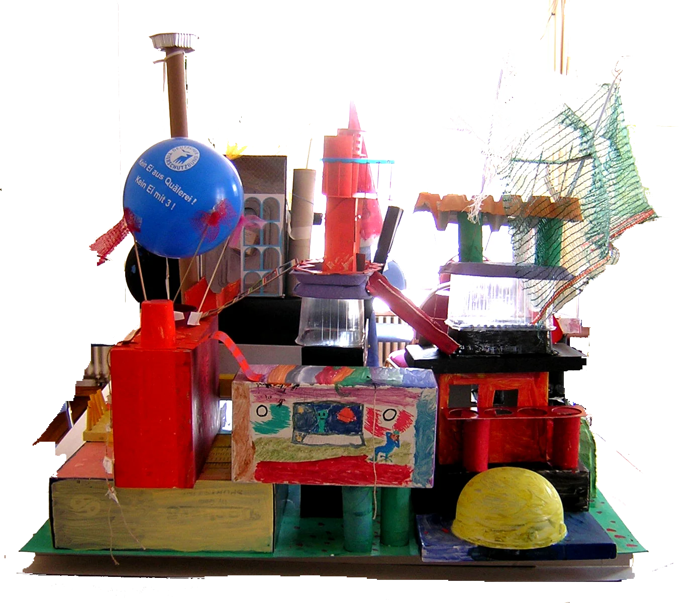 - Am 2. Tag haben die Kinder zunächst an einem eigenen Entwurf für eine Wohnung, ein Haus oder einen Garten gearbeitet. Klar war aber, dass alle Einzelmodelle am Schluß zu einem Ganzen zusammengefügt werden sollten.