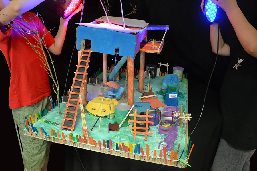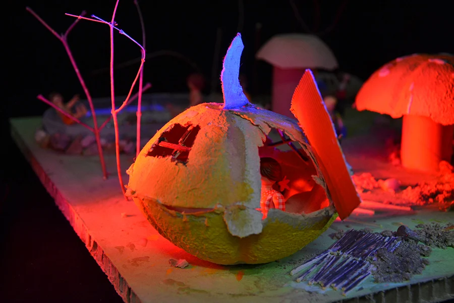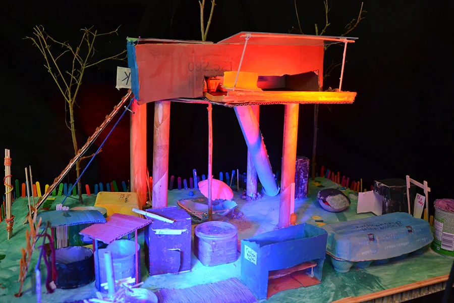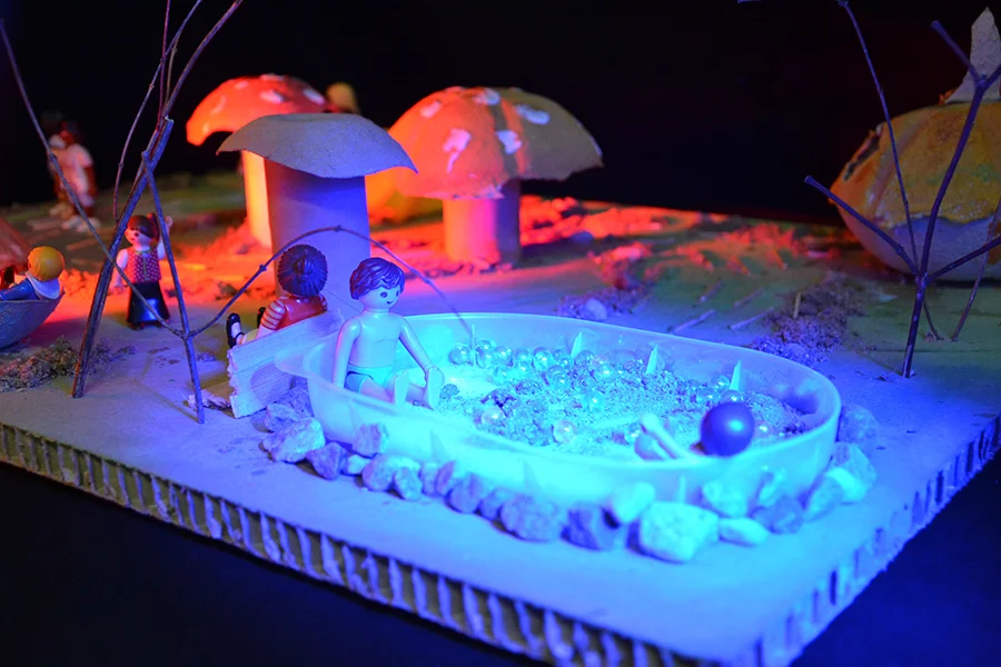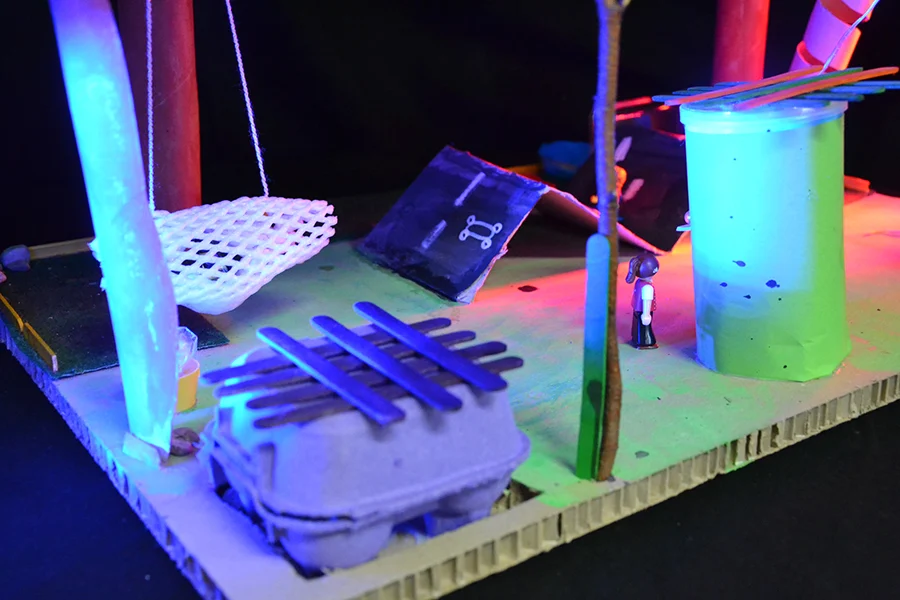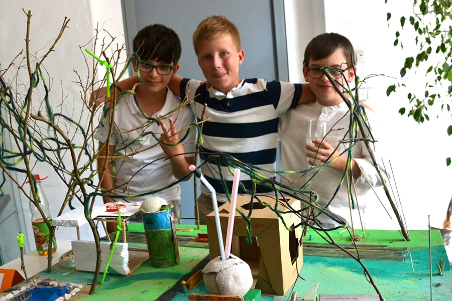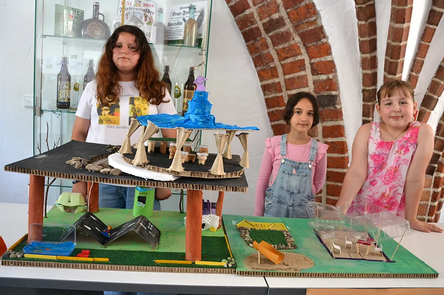 In der Arbeitsphase sollten die Schüler*innen im Modell eigene phantasievolle Zukunftsvisionen zu den Orten entwickeln. Es sind 8 Projekte entstanden