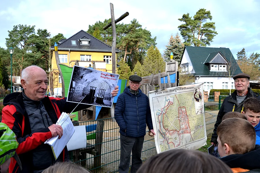 Beim Erkunden von 4 interessanten geschichtsträchtigen Orten in Borgsdorf wurden wir vom Geschichtskreis Borgsdorf unterstützt und begleitet: Dr. Erdmann Bieber, Dr. Ulricht Bengt, Horst Bittkau und Jürgen Rosinsky haben uns mit historischen Plänen, Fotos und Hintergrundinformationen versorgt. Unter dem Titel Orte im Wandel – Wir reisen durch die Zeit haben wir so weitere Geheimnisse des Ortes gelüftet und außerdem die Lust am Entdecken noch weiterer Geschichten geweckt, um die Identität mit dem eigenen Wohnort zu stärken.