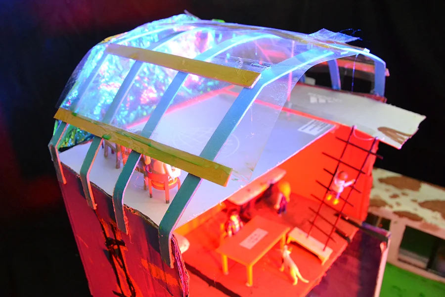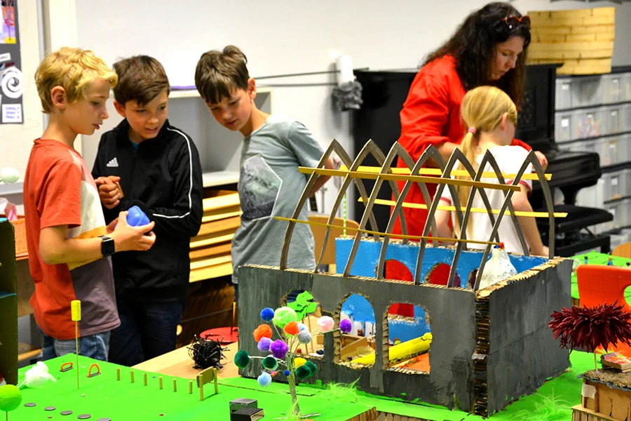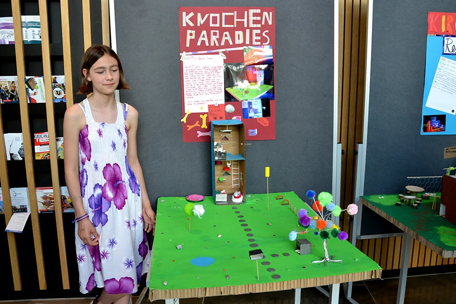 In der Arbeitsphase konnten die Schüler:innen im Modell eigene phantasievolle Zukunftsvisionen zu den 4 Orten entwickeln.