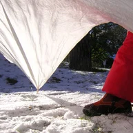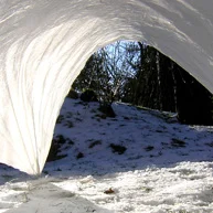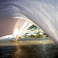 Wenn es draußen klirrend kalt ist, wird Wasser zu einem unerwarteten Baumaterial. Genaues Beobachten und Experimentieren ist gefragt, damit sogar aus Eis ein Unterschlupf auf Zeit entsteht. v