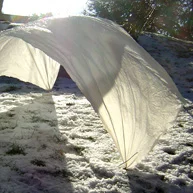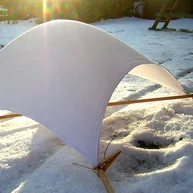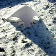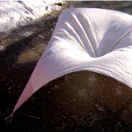 In diesem Experiment werden die sich ergänzenden Eigenschaften der Materialien Wasser und Stoff genutzt. Der Stoff dient als Trägermaterial, das gefrierende Wasser fixiert die Schalenkonstruktion. In der Realität entspricht dieses konstruktive Prinzip dem bewehrten Stahlbeton- der Beton bildet die Masse (= Trägermaterial), die Stahlmatten und -stäbe stabilisieren und fixieren den gegossenen Beton. Diese Konstruktionen werden in der Realität für Dachschalen genutzt, die stützenfrei große Räume überspannen sollen – z.B. Markthallen, Flugzeughangars oder Tribünenüberdachungen.