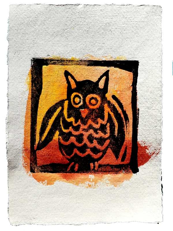 Linoldruck in der 6. Klasse auf effektvoll aquarelliertem Malgrund