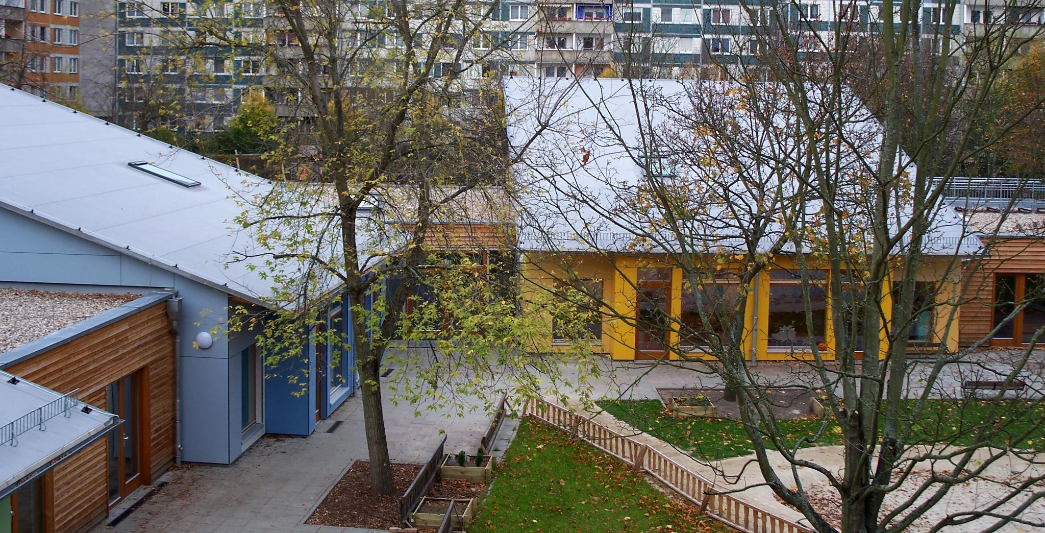 Der Neubau der Kita „Bärenkinder“, den wir als JNS Architekten (Oliver Jirka, Martina Nadansky, Frauke Schlüter) gebaut haben- eine Erweiterung des vorhandenen Plattenbautyps- ist auf dem kitaeigenen sehr großen Freigelände entstanden. Leider mussten dafür im Jan. 2012 6 Bäume gefällt werden. Außerdem wollten wir die Kinder auf die bevorstehende Baustellenzeit und vor allem auf den partiellen Verlust ihrer gewohnten Freiräume vorbereiten.