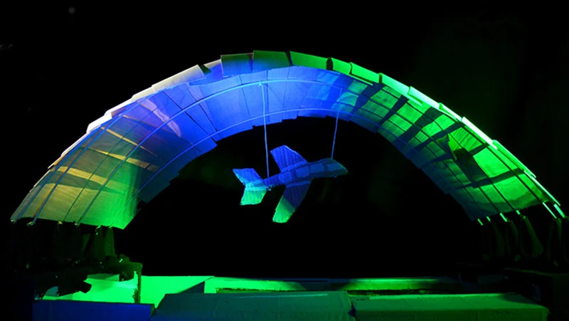 Flugzeugmuseum- Besonderer Blickfang des Flugzeugmuseums „Fliegende Helden“ in einem ehem. Flugzeughangar ist das gespannte Bogendach, das eine besondere Herausforderung an Statik und Material darstellt.