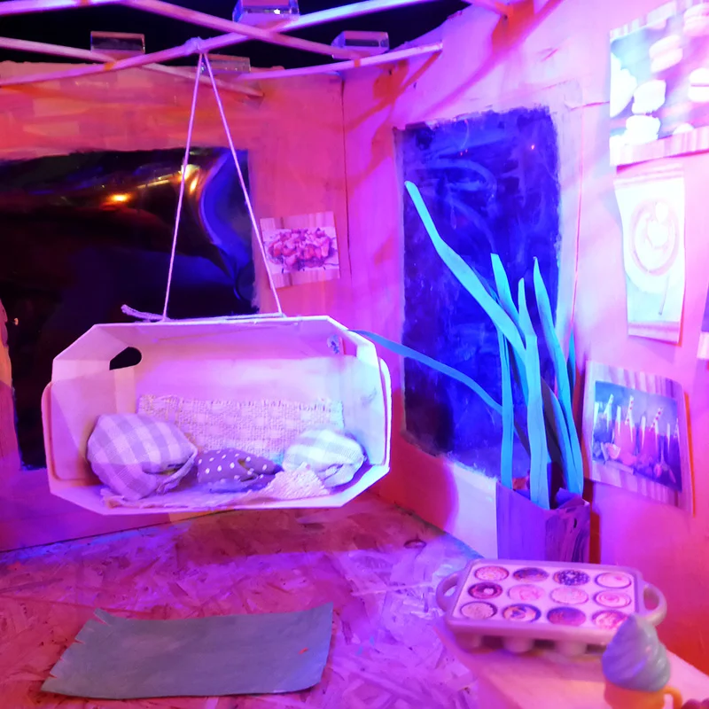Happy Café- In der ehem. Mannschaftskantine ist ein farbenfrohes und phantasievolles Café entstanden- was für eine positive Verwandlung!