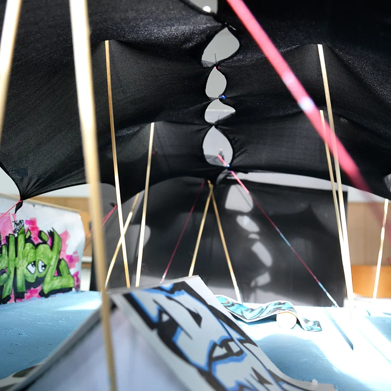 Skaterpark- Das Zeltdach des Skaterparks bildet eine bewegte Dachlandschaft in Analogie zu den Skaterbahnen am Boden.