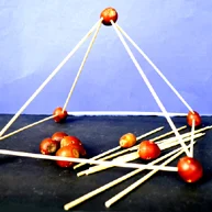 Einfache konstruktive Fachwerksysteme bestehen im wesentlichen aus Knotenpunkten und Verbindungsstangen. Diese sind orthogonal, diagonal oder sogar unregelmäßig über die Knotenpunkte verbunden und bilden dadurch ein steifes, statisches Gerüst oder Gerippe. Die Statik dieser weit verbreiteten und bekannten Konstruktionsart kann mit einfachen Küchenutensilien nachempfunden werden und führt schnell auch jüngere Kinder zum Erfolg.