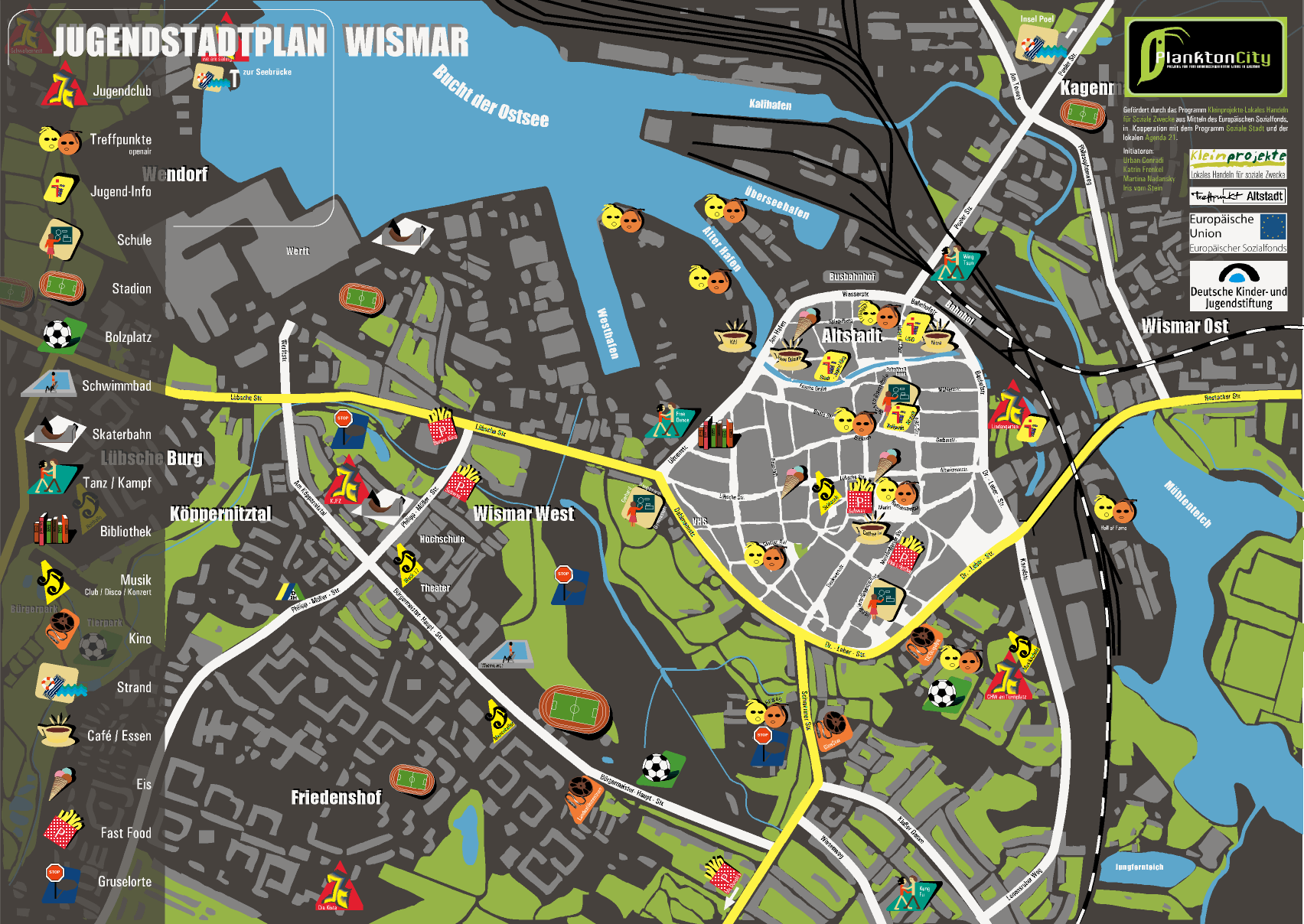 PlanktonCity ist ein partizipatorisches Jugendprojekt, bei dem Jugendliche zwischen ca. 14 und 19 Jahren selbst zu Akteuren und „Machern“ einer eigenen Jugend- Internetseite sowie eines Jugendstadtplans von Wismar 2005/06 wurden. Inhalte, Layout und Konzeption wurden in 4 fachlich geleiteten Workshops sowie in regelmäßigen Arbeitstreffen- jeweils dienstags von 16-18 Uhr im Treffpunkt Altstadt – von den Jugendlichen selbst erarbeitet.