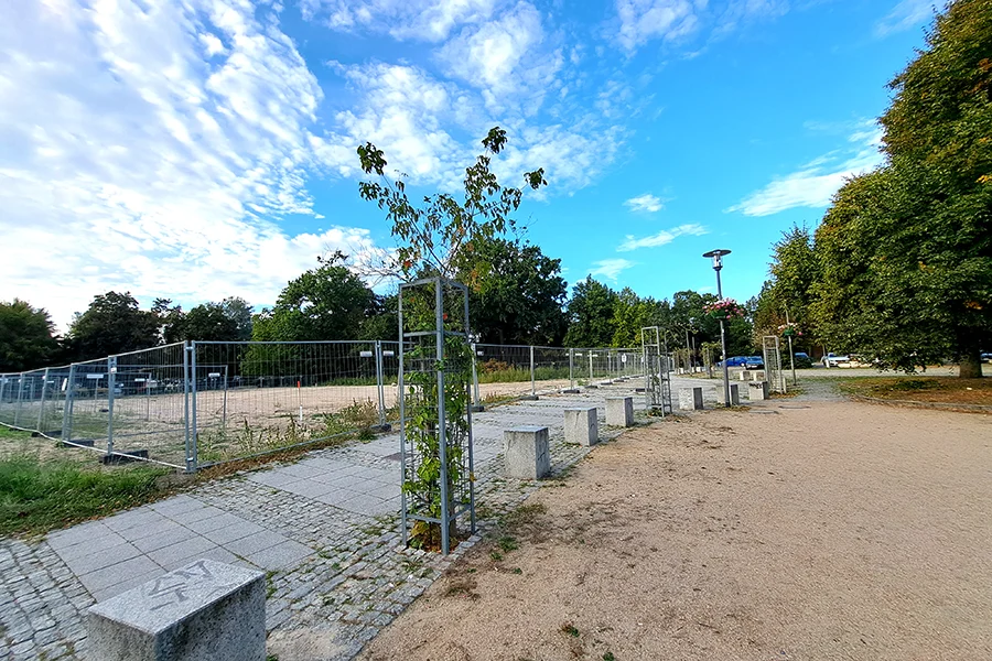 Durch die Entsiegelung eines Parkplatzes entsteht dieser kleine Stadtpark mit diversen Angeboten zur Freizeitgestaltung.