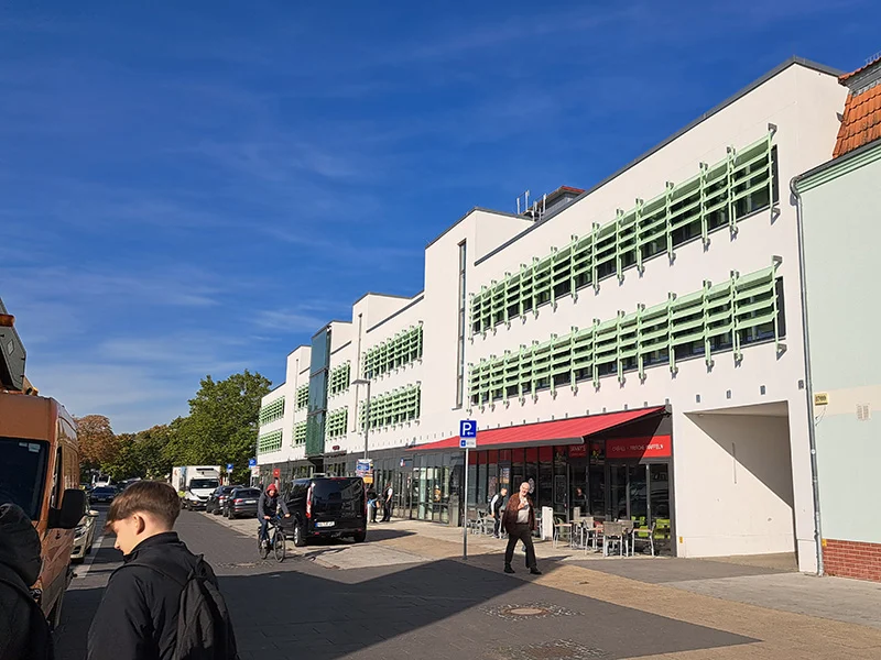 Die „Grüne Oase“ ist ein kleiner Stadtpark auf dem alten Dorfanger Seegefeld. Die Bushaltestelle wird ergänzt durch ein Café.