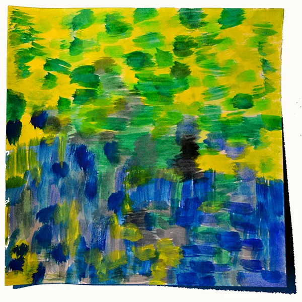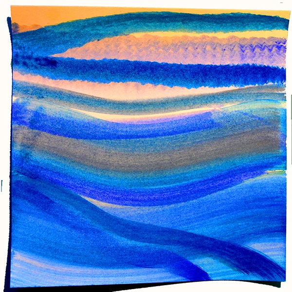 Wasserstrukturen, Wellenformen und Farbnuancen des Wassers mit SchülerInnen der 3. Klasse (Gouache)
