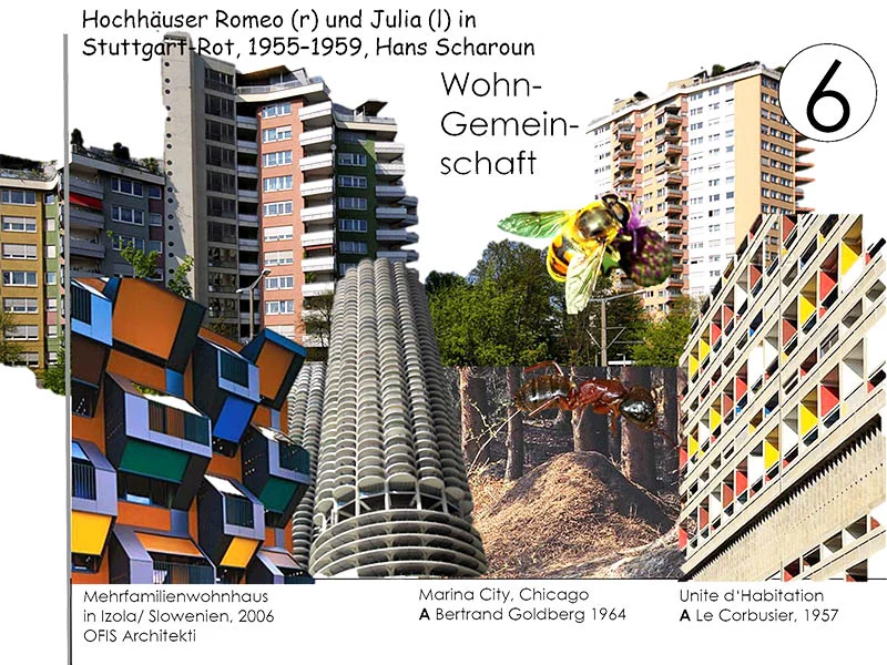 Anhand von gebauten Architekturbeispielen in Stuttgart wollen wir diesen Analogien von Architektur und Natur auf die Spur kommen. Wir erkunden dazu Gebäude und Orte in der Stadt, analysieren ihre Entstehung, verstehen ihre Konstruktion und Besonderheiten. Wir sammeln eigene Materialien, arbeiten mit Zeichnungen, Collagen oder Fotos, befragen Bewohner und Architekten. Dazu recherchieren wir Bauformen in der Natur, die Gemeinsamkeiten mit unserer gefundenen Architektur aufweisen. Dies können gesammelte und gefundene Objekte sein (Muschel, Schneckenhaus, Nuss…), Beispiele aus Büchern oder Erfahrungsberichte. Beide Themen führen wir dann ein einem selbst gebauten Modell im Workshop zusammen, das z.B. eine bestimmte Konstruktion, ein bestimmtes Material, eine bestimmte Funktion o.ä. in den Mittelpunkt stellen könnte. Eine Abschlussveranstaltung präsentiert alle Arbeitsergebnisse.